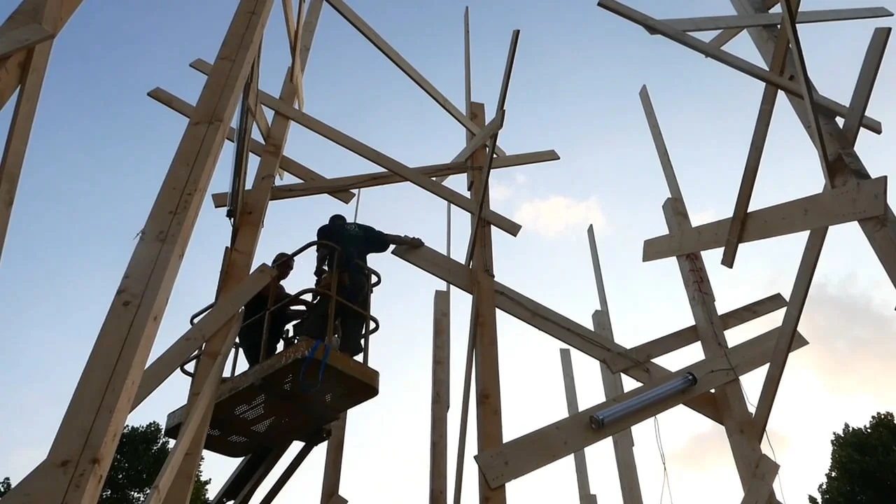 The aim is to gather people around a simple symbol, in this case the forest. More than a simple sculpture, we propose a huge installation that can be walked through, and experienced from within.