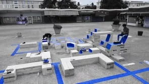 The Hijacked City is a participatory project led for a local contract of artistic education for the city of Massy in France. It is an in situ intervention in the "Franciades" a transitional district. The Hijacked City is an artistic work about the urban and architectural context which includes several phases led with children of the district: model, studies, visits, 3d modelling, formwork customizing, concrete pouring, wood cutting and assembling... until the final project, designed as a urban furniture inspired by the volumes of the disctrict's buildings.