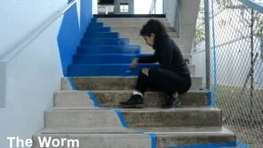 The Worm établit un dialogue graphique avec l'architecture du bâtiment. L'oeuvre tire parti de la hauteur et de la profondeur des porches, en amenant une perturbation de la lecture de l’espace.